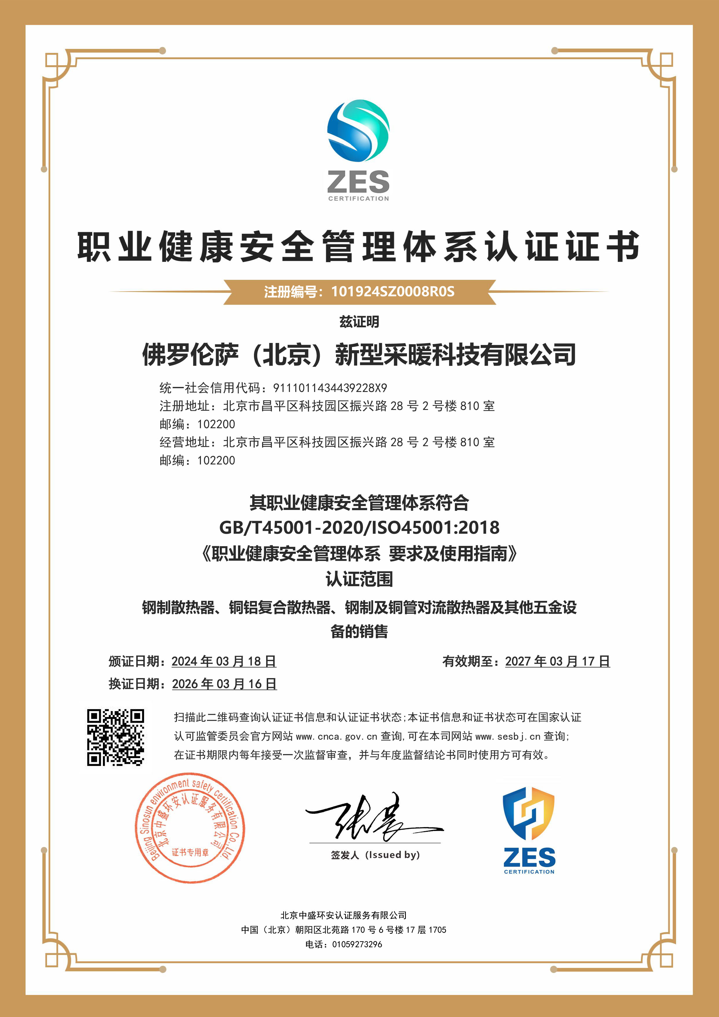 环境管理体系认证证书